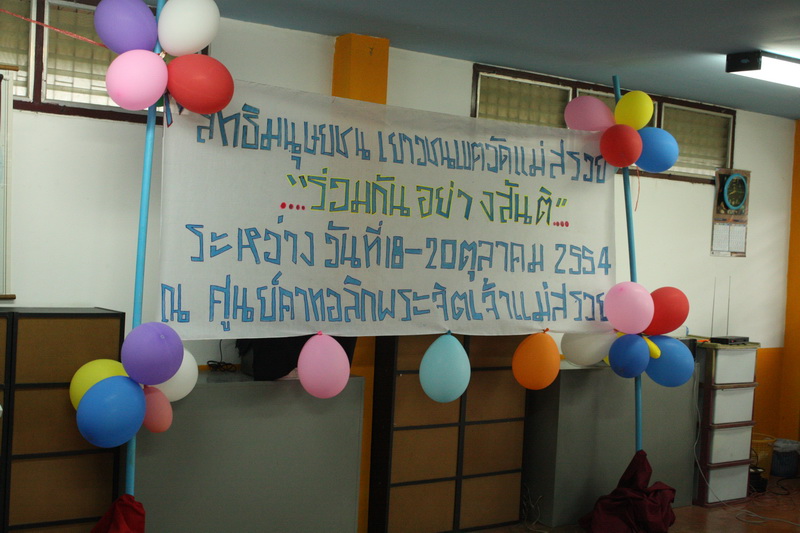 น้องๆ เยาวชนชายหญิง ร่วมกันเรียนรู้ในค่าย "ร่วมกันอย่างสันติ" เมื่อวันที่ 18 - 20 ตุลาคม ที่ผ่านมา ได้มีการจัดอบรมสิทธิมนุษยชน ให้เยาวชนในเขตวัดแม่สรวย ในค่าย "ร่วมกันอย่างสันติ" โดยมีเยาวชนชายหญิงจากหมู่บ้านต่างๆ ที่กำลังศึกษาระ ...